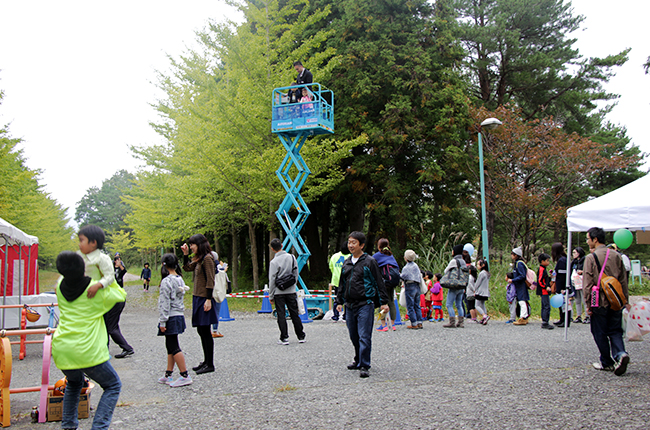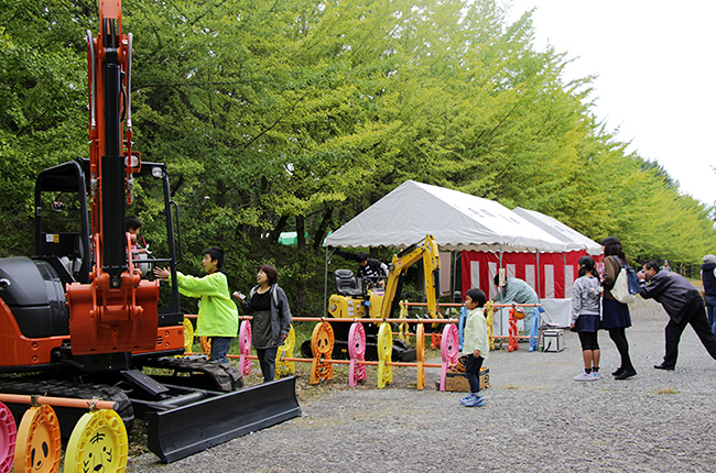 当日は重機メーカーのコマツさん、太陽建機レンタルさんの協力を頂き、実際に重機に乗ってミニショベルカーでボールすくいを体験するコーナーもやることになりました。(14日、15日時間限定・ボールがなくなり次第終了)