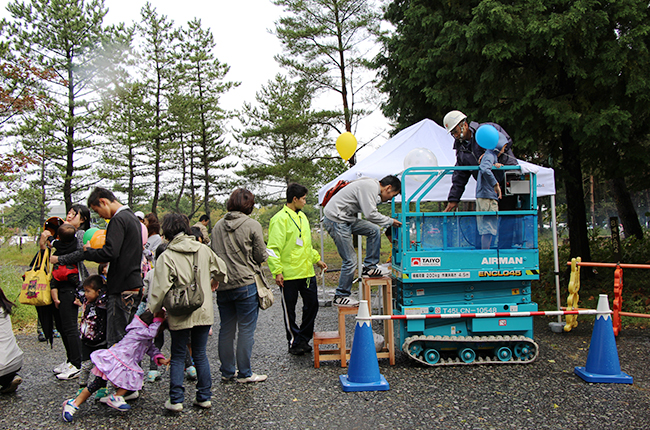 高所作業車、バックホウ、ショベルカー等の重機に乗車しての記念撮影をしてみませんか。