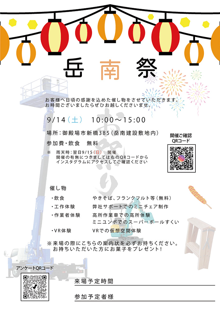 このイベントでは、皆様に楽しいひとときをお過ごしいただけるよう、さまざまな企画をご用意しております。事前にお配りしておりますチラシが入場チケットとなりますので、ぜひお持ちいただきご参加ください。