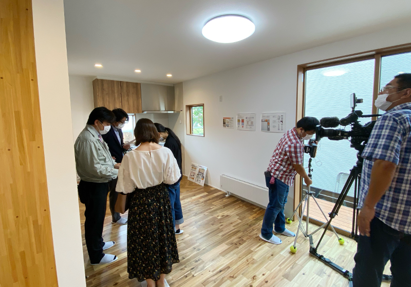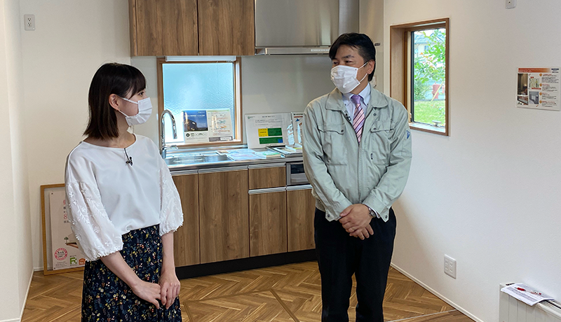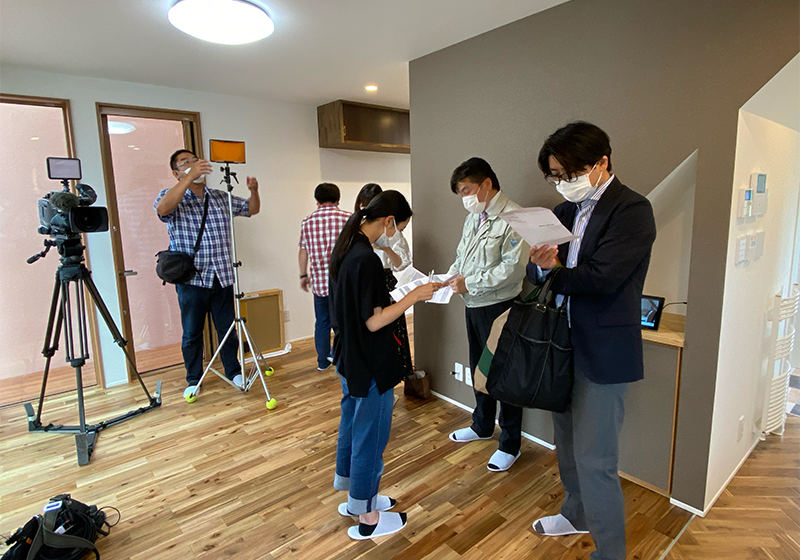 TV静岡小倉アナウンサーが完成間近のK様邸に取材に見えました。