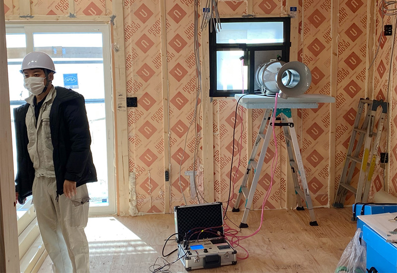 12/4(土)御殿場市で構造見学会、気密測定検査を開催致しました。