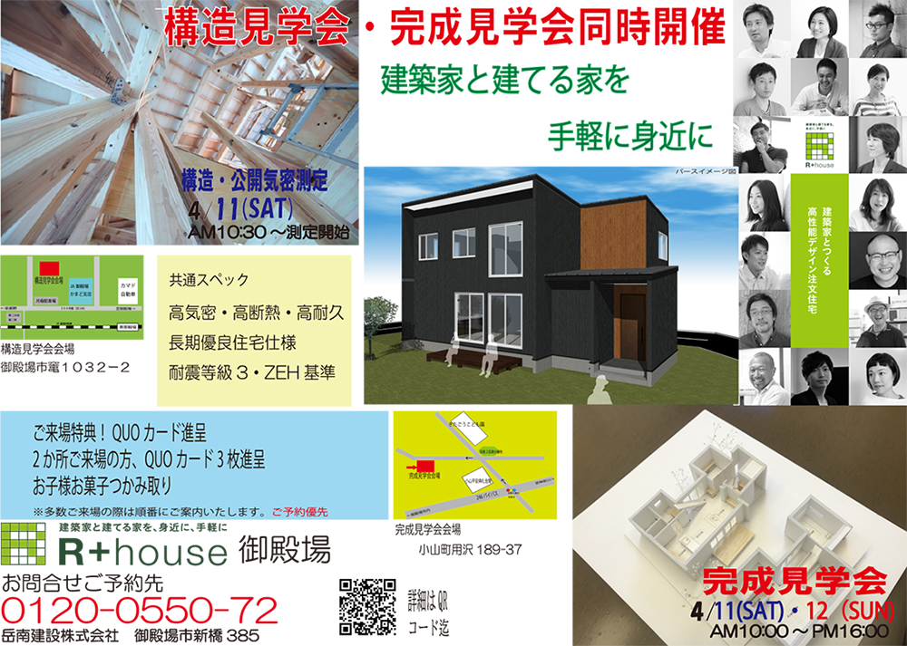 完成見学会 日程:4月11日(土)・12日(日) AM 10:00 ~ PM16:00 会場:小山町用沢189-37