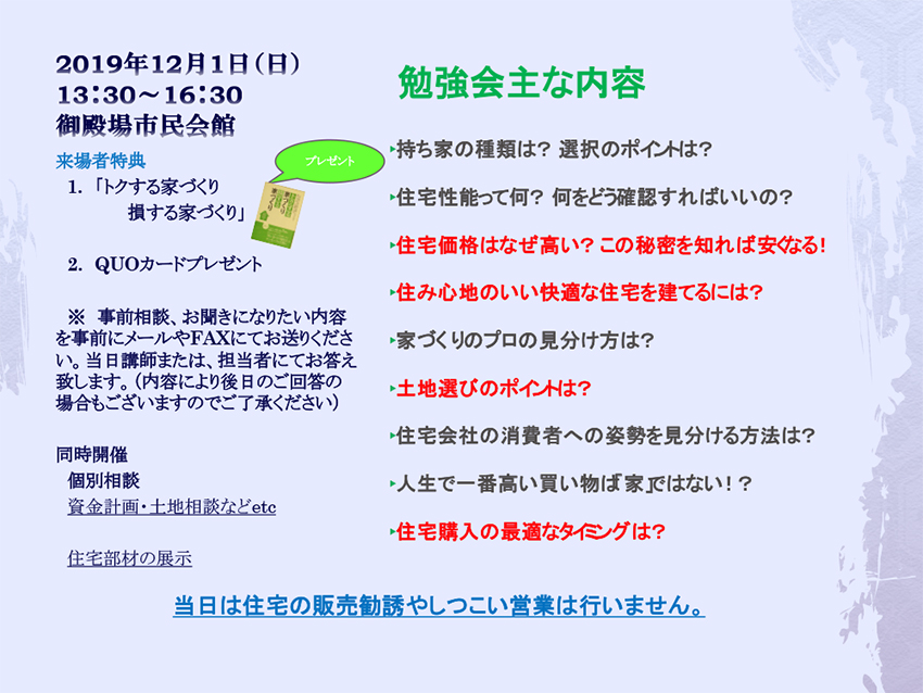 第10回 後悔しないための賢い家づくり勉強会のお知らせ