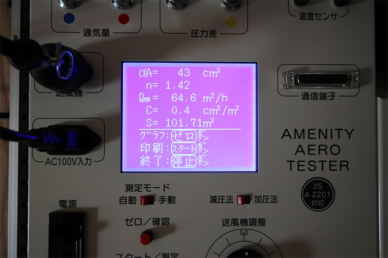 こちらの機械で気密測定を行います。