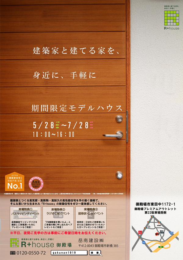 『くつろげる気持ちのいい空間』をテーマにデザインしました。外観はスクエアなフォルムですが、帰宅時にホッとできるように家から温かい光が漏れる窓の配置や大きさに配慮したり、家の中は吹き抜けのあるリビングにし、開放的な空間にしました。またデザインだけではなく、R+houseの高気密高断熱の利点を活かす為に、全て一つの空間としてつなげ、室内の温熱環境を均一になるように設計しました。