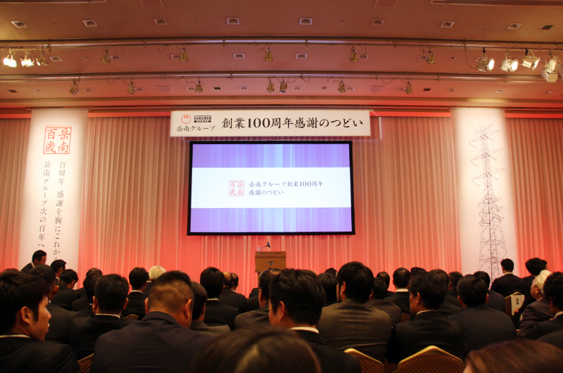 2019年5月27日に 東京都帝国ホテルにて、「岳南グループ創業100周年感謝のつどい」を催させていただきました。皆様に長く支えていただき、100年という節目を迎えることができました。今後も地域や社会に貢献し、皆様に喜ばれる会社であり続けられるよう頑張っていきますので、今後ともよろしくお願いいたします。