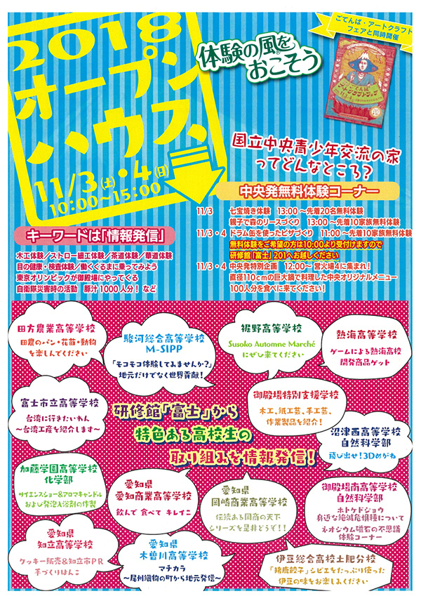 11/3・4日(土、日)国立青少年中央交流の家のオープンハウスに参加します。