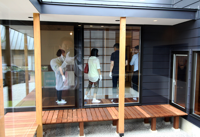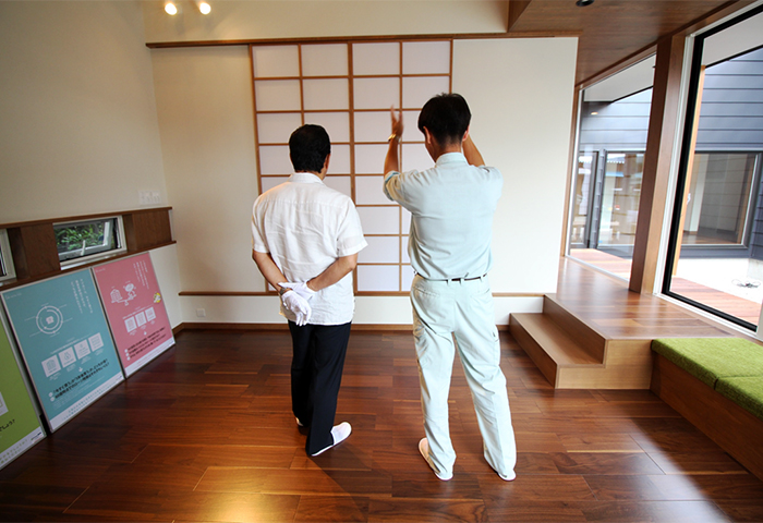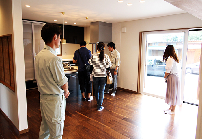 住宅内をご案内している様子・・・建築家の出村さんも積極的にご来場者の方にお話ししていただきました。