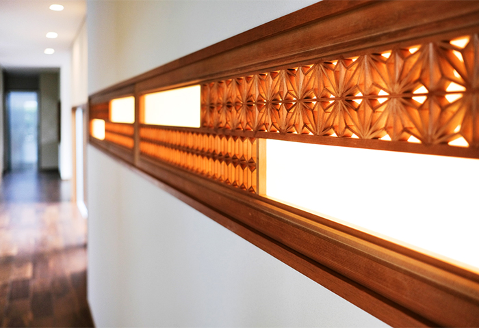 古い家屋の欄間や思い入れのある部材をお施主様のご希望で新しい家に生かしました。