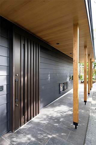 3世帯住宅でプライバシーを確保しつつ存在感を感じさせるよう設計しました。ご高齢のおばあ様への配慮です。