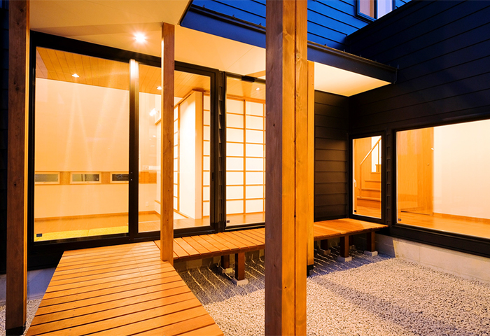 夜は落ち着いた雰囲気の中庭と縁側 夏は夕涼み!