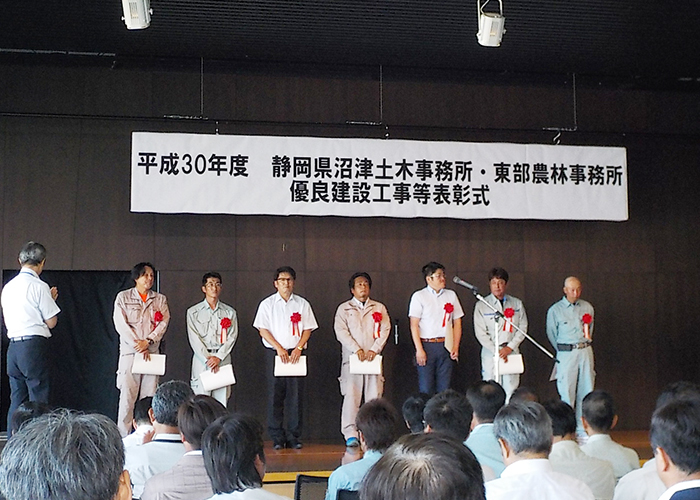 平成30年8月22日に静岡県沼津土木事務所及び東部農林事務所合同の優良工事表彰式が実施されました。