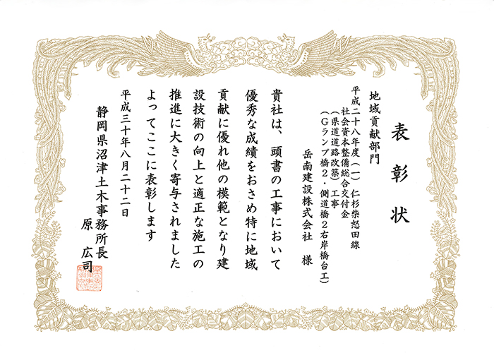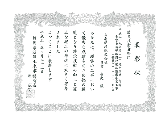 静岡県沼津土木事務所   沼津土木事務所長 表彰