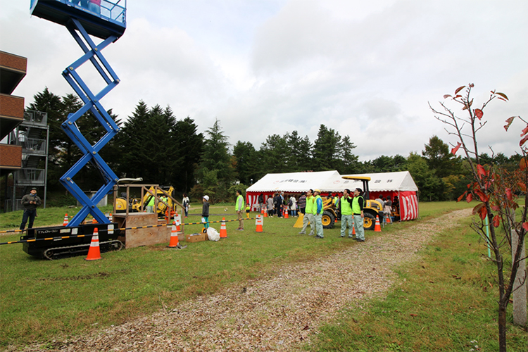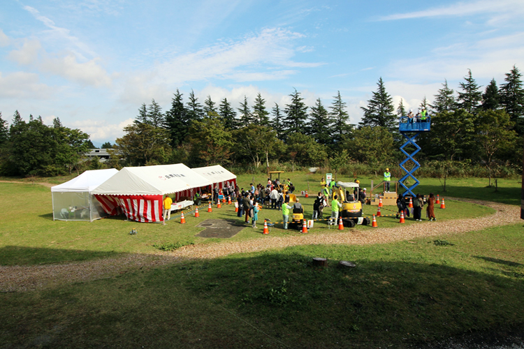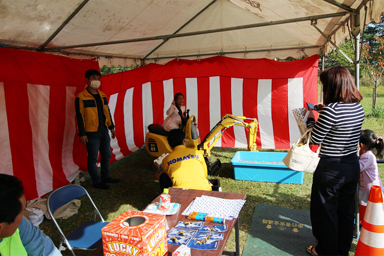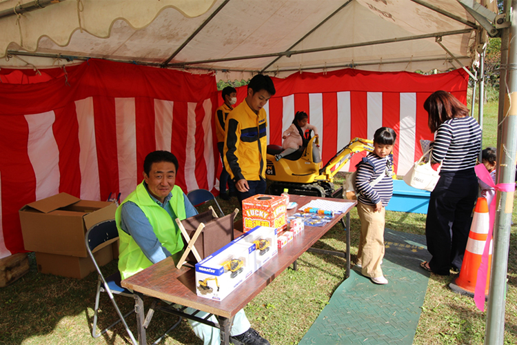 令和元年10月27日(日) 国立中央青少年交流の家のオープンハウスが開催されました。当社は今年も『働く車に乗ろう』に出店いたしまして、多くの家族に来場していただきました。コマツ機械さんと太陽建機御殿場店さんに協力をいただき、工事現場で使用する建設機械を無償で提供していただきました。500組を超える家族に来ていただき、大盛況でした。