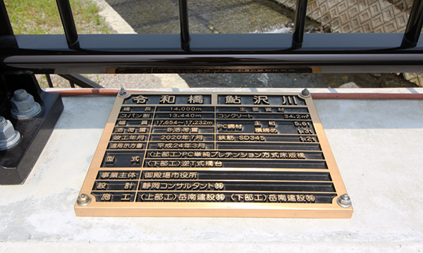 橋名板:上部工、下部工に当社社名が記載されています。