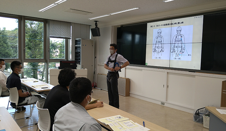 落下制止用器具に関して研修を行い、労働災害への理解を深めていただきました。