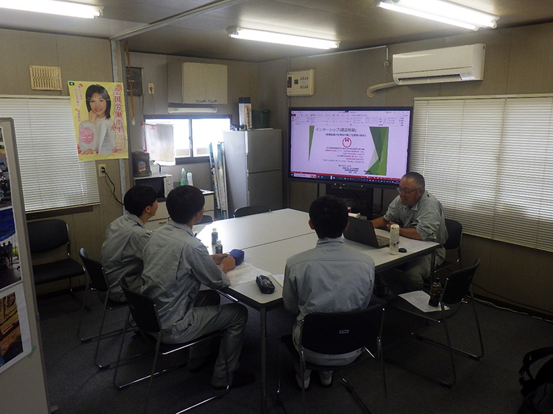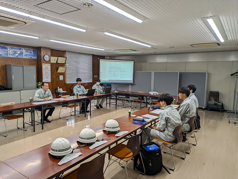 プログラムは、会社概要やグループ企業の説明に始まり、建設業の役割や魅力、そして現場監督の仕事についての紹介を行いました。