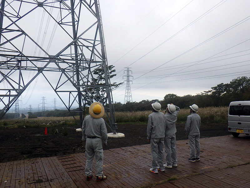 土木部門では、実際の施工中の土木現場にご案内し、新設鉄塔工事を間近で見学していただきました。
