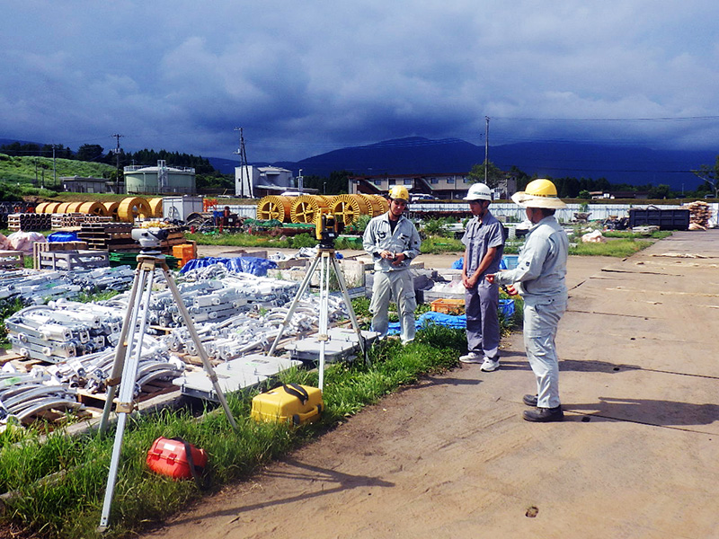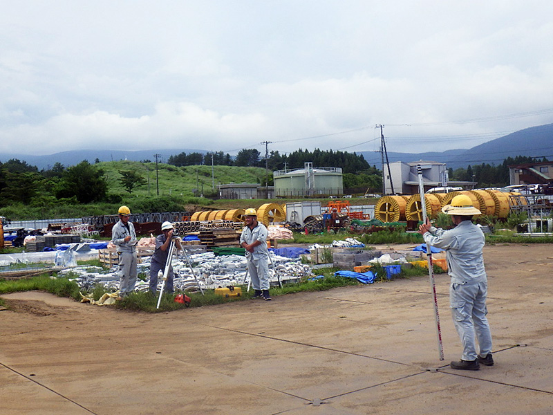 土木部門では、実際の施工中の土木現場にご案内し、測量などを体験していただきました。